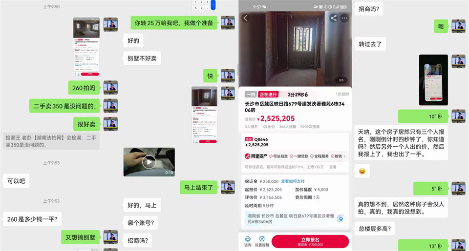 實(shí)際房子沒什么撿漏因素,我覺得應(yīng)該會(huì)280-300萬有戲,甚至破300萬的。沒想到最后就3個(gè)人報(bào)名拍(其中還有個(gè)人報(bào)了2個(gè)名,因?yàn)槿逃袀€(gè)人沒出價(jià)),我9點(diǎn)50多分的時(shí)候還在外面看房,打開手機(jī)一看就3個(gè)人,又這么便宜,不拍太可惜了,就想著260萬去試試(根本沒指望能拍到)。