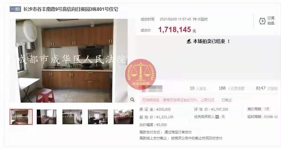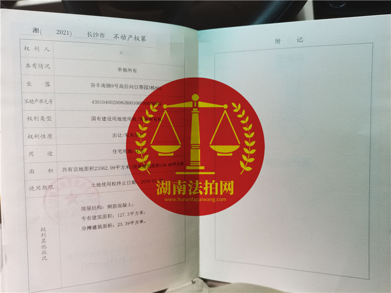 在湖南法拍網(wǎng)法拍房地產(chǎn)經(jīng)紀有限公司的輔助競拍下,恭喜葉小姐成功拍得高新向日葵豪宅一套,恭喜撿漏!